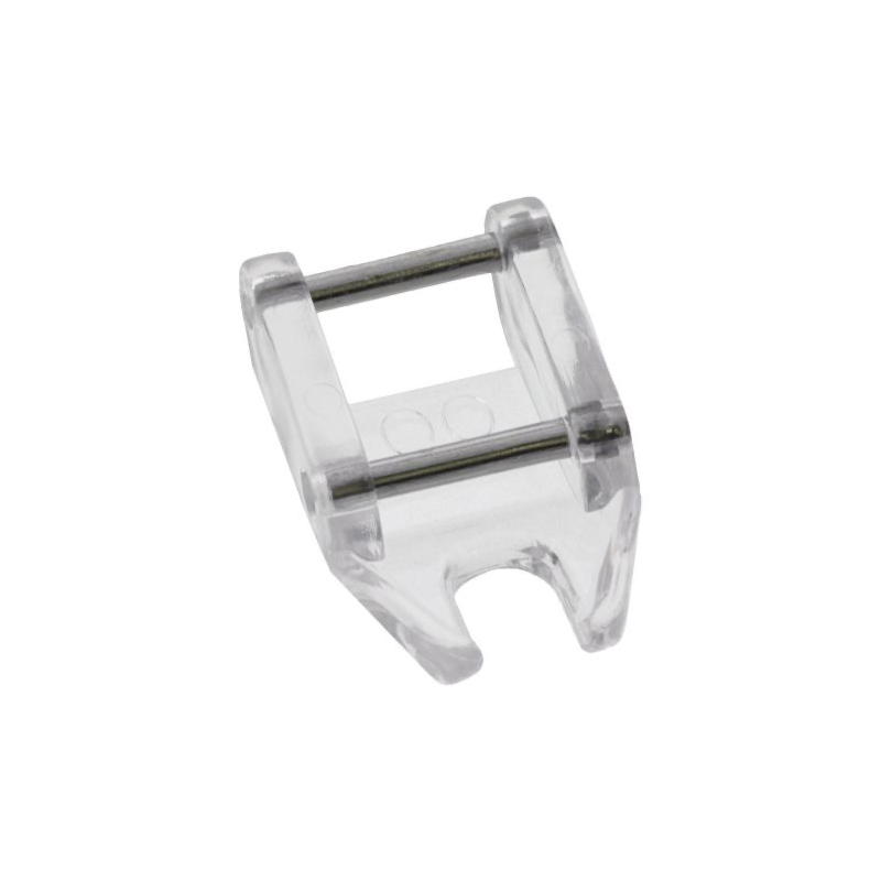 Sa semelle plate garantit un entraînement régulier, même sur plusieurs épaisseurs. La forme ajourée du pied permet également de mieux voir le tracé ou le bord du tissu appliqué.