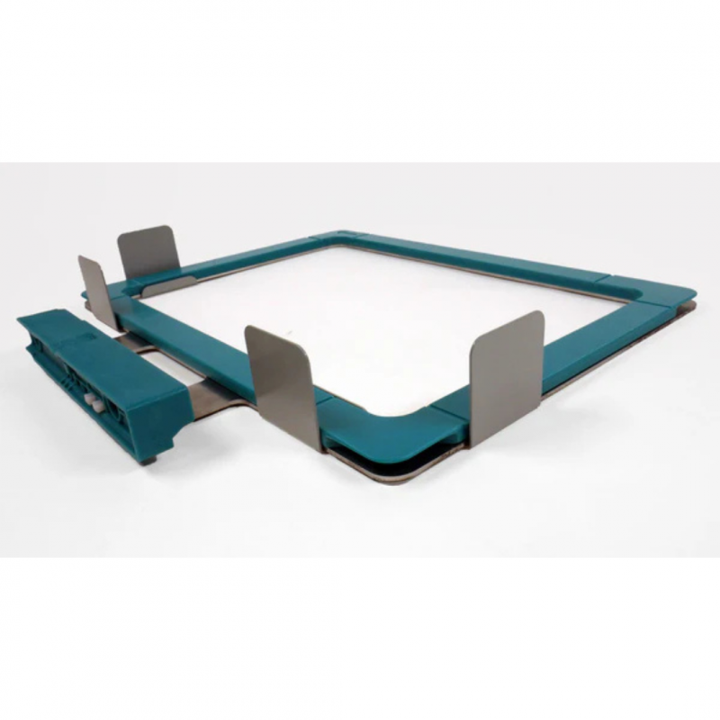 Grâce à son système en deux pièces, il maintient fermement le cadre inférieur pendant que vous placez le stabilisateur et le tissu. Il suffit ensuite d’appliquer le cadre magnétique supérieur, qui vient se positionner automatiquement de manière parfaitement droite.
