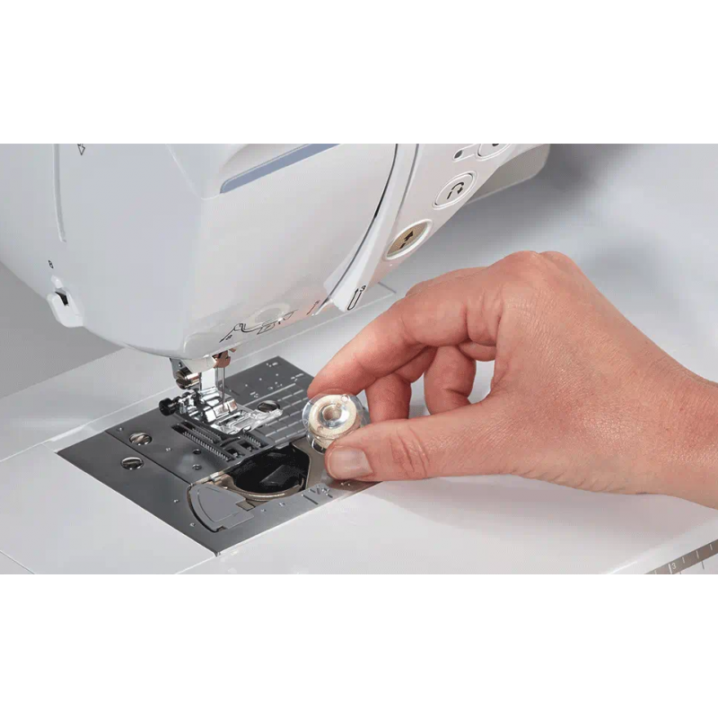 La machine détecte l’épaisseur du tissu et ajuste automatiquement la pression du pied-de-biche pour créer des points de qualité supérieure et réguliers.
