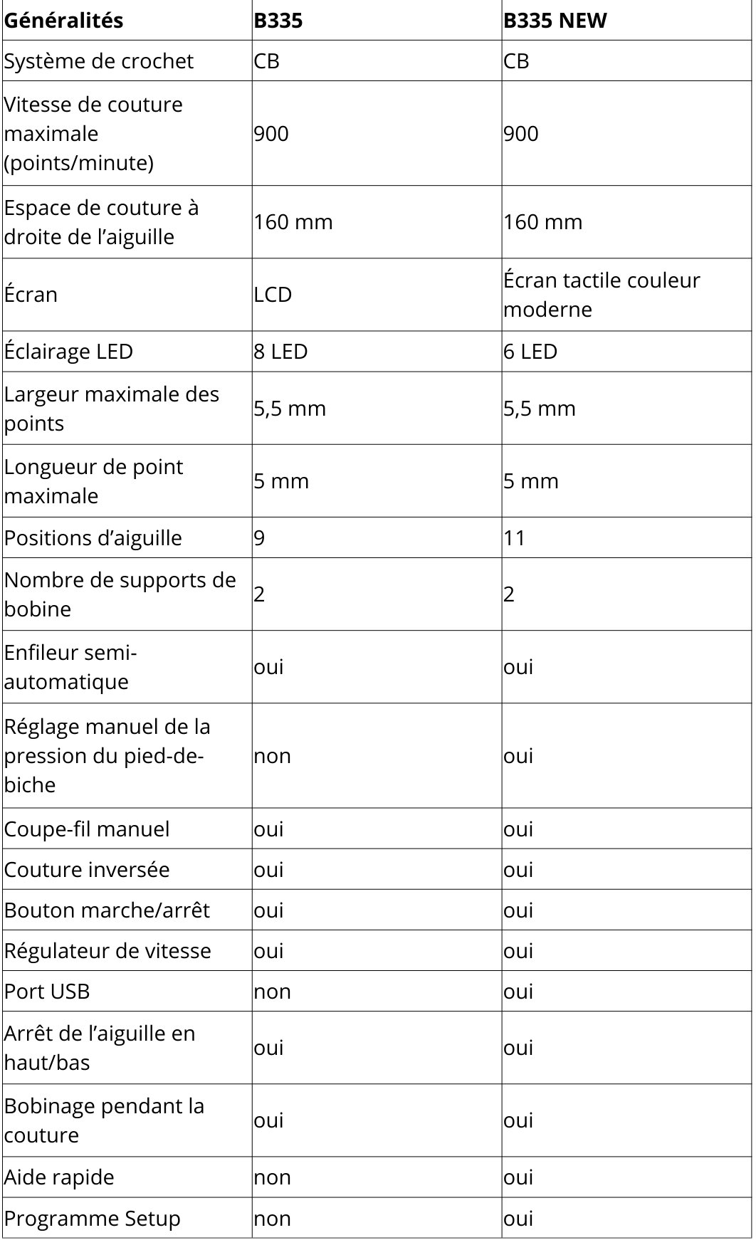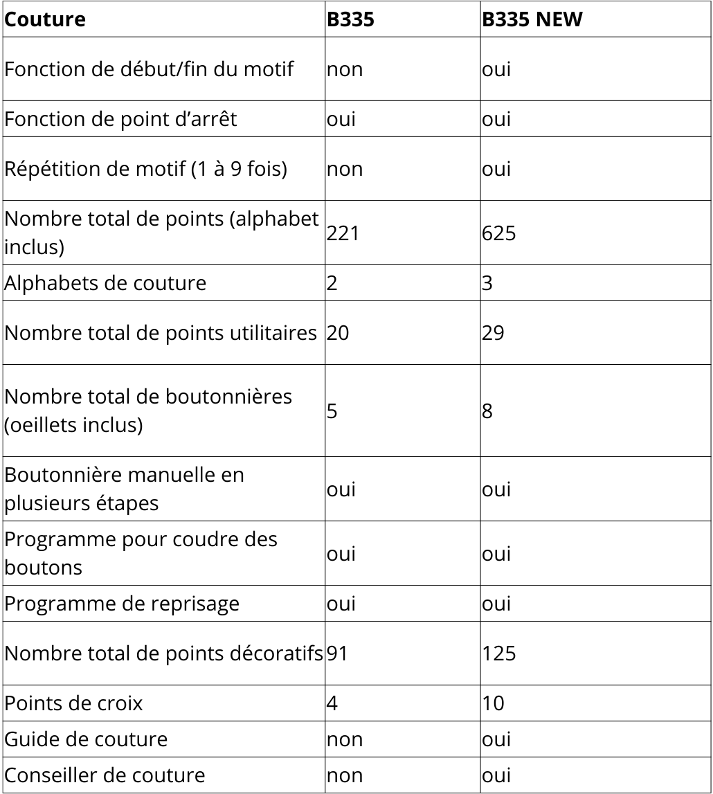 | Couture sans pédale | Présence d'une touche Marche-Arrêt |