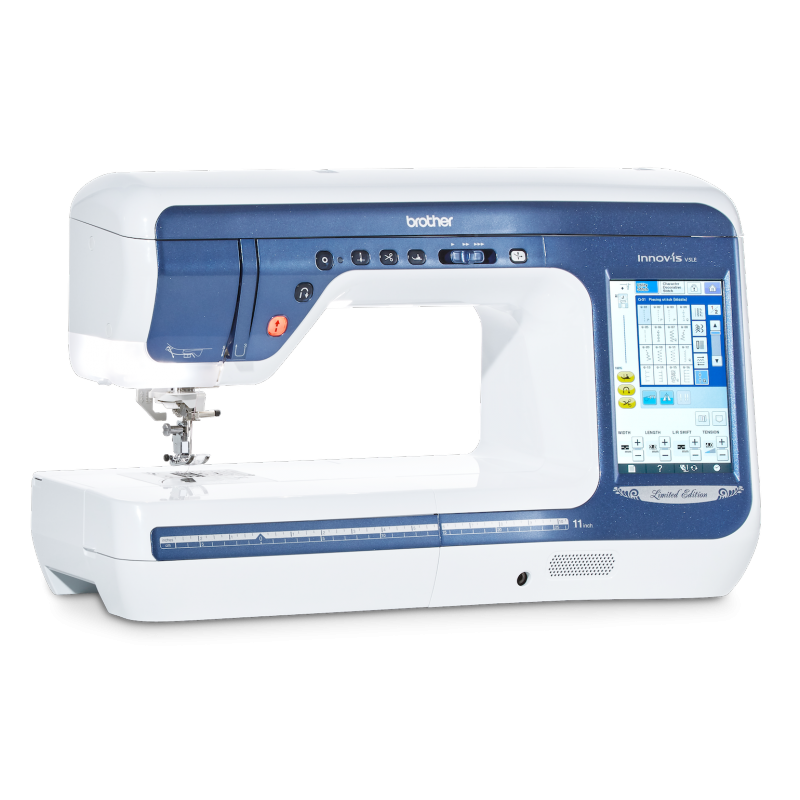 Dotée d'un écran tactile couleur, cette machine à coudre Brother série V5-LE dispose de l'une des plus grandes surfaces de travail qui existe sur le marché avec un bras de 28,5 cm de long. Elle propose 652 points de couture et 224 motifs de broderie, sans oublier son enfilage automatisé, son nouveau pied double entrainement motorisé (en option), son pied à pointeur laser pour la broderie (en option) ainsi qu'un port USB et un port host.