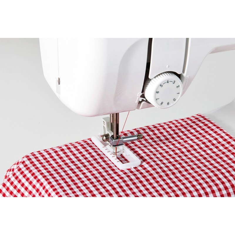 Etudiée pour votre sécurité et adaptée au plus jeunes. Un vrai dispositif de protection, le protège-doigts, évite le contact des doigts avec l'aiguille lors de la couture.
