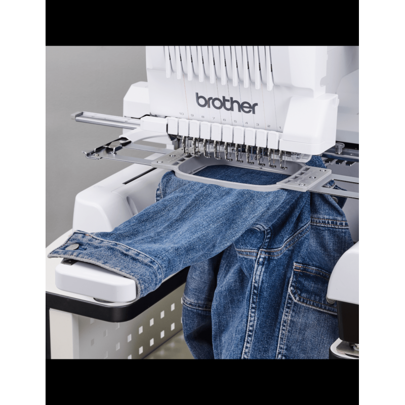 La PR1060W permet de manipuler facilement des pièces de grande taille telles que des vestes et des housses de couette. Grâce à son grand champ de broderie et à sa gamme de cadres de broderie, vous pouvez broder sur presque tous les vêtements ou textiles. Mais elle peut également broder les pièces plus petites et délicates – la PR1060 est une machine à broder d'une grande polyvalence !