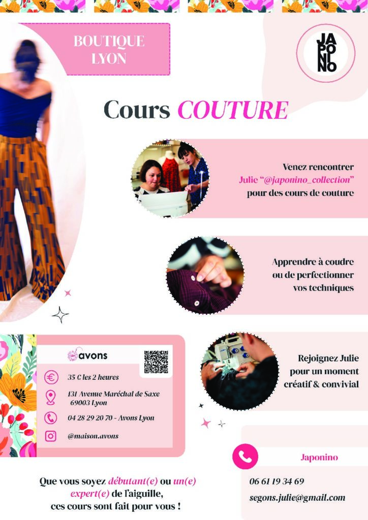Envie d’apprendre à coudre ou de perfectionner vos techniques ? Réservez votre cours avec Julie de Japonino. Les cours se...