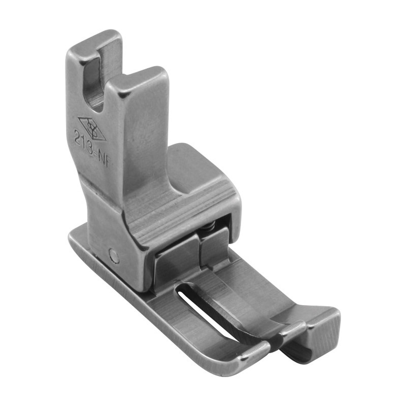Agrandir l'image Le pied compensé 213-NF (droit) est un accessoire indispensable pour les machines à coudre industrielles à double entraînement. Conçu pour faciliter la couture sur des tissus de différentes épaisseurs, il permet de compenser les variations de hauteur entre les couches de matière et d’assurer une alimentation régulière du tissu sans décalage.