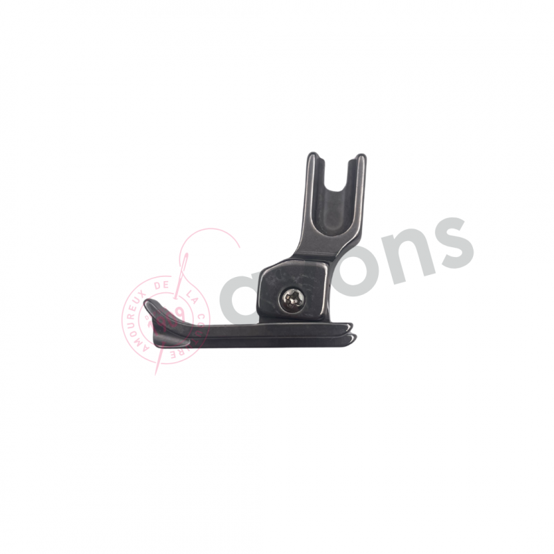 Agrandir l'image Le pied compensé est spécialement conçu pour les machines à coudre industrielles à alimentation d’aiguille (needle feed). Ce pied presseur gauche offre une compensation de 2 mm, idéale pour coudre avec précision sur des tissus d’épaisseurs différentes ou des matériaux multicouches.