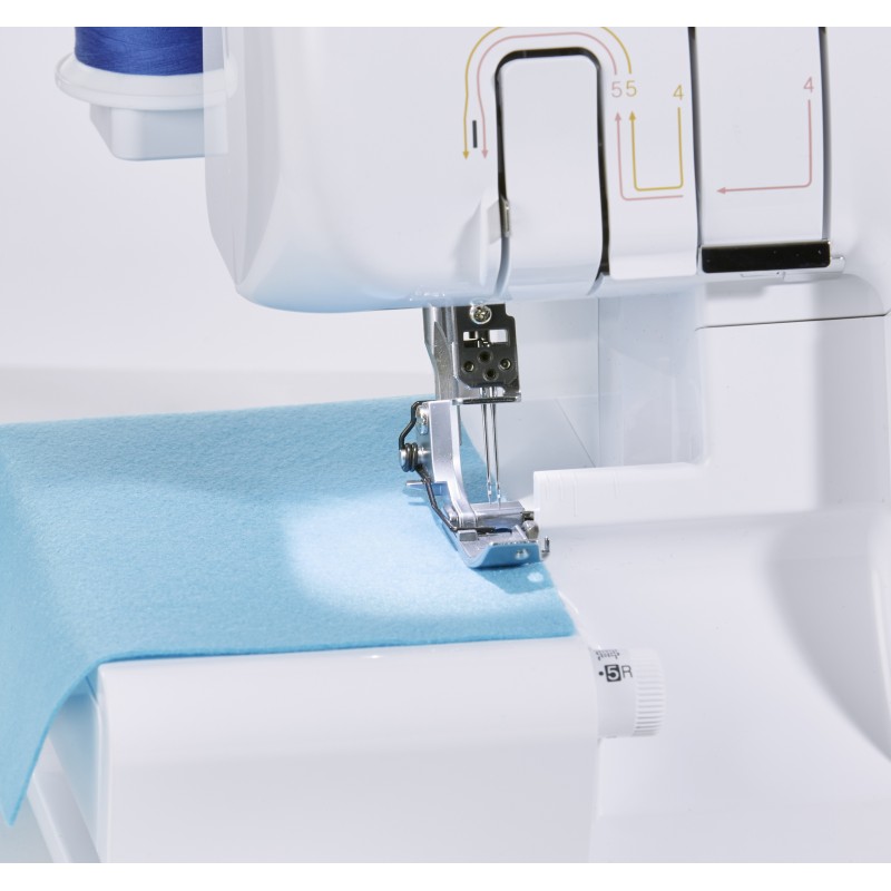 La surjeteuse 2104D de Brother surjette les bords et coupe l’excédent de tissu en une seule étape. C’est le partenaire idéal des finitions de couture.