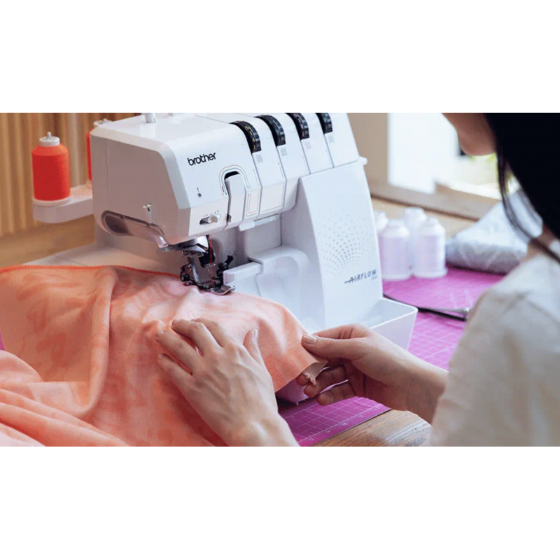 Simplifiez-vous la couture des tissus difficiles avec la surjeteuse Airflow 3000 équipée du système automatique d’enfilage à air rapide et simple de Brother. Etonnante, elle est équipée d’un système automatique d’enfilage à air facile à utiliser, d’un système perfectionné d’enfilage des aiguilles, de leviers d'activation/désactivation et d’une vitesse de couture pouvant atteindre 1.300 points/minute.