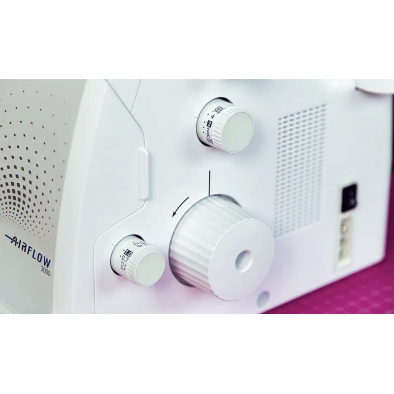 Airflow 3000 va révolutionner votre façon de coudre. Réalisez les finitions les plus délicates sur les tricots, les matières extensibles, les tissus transparents et même le Lycra.